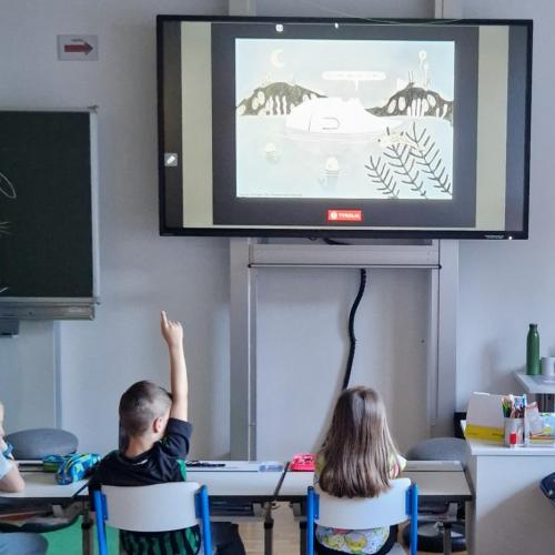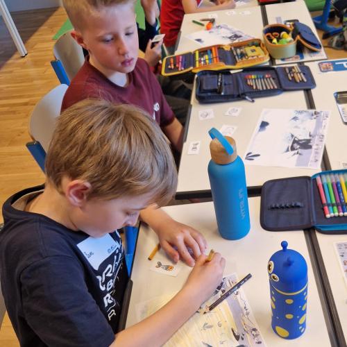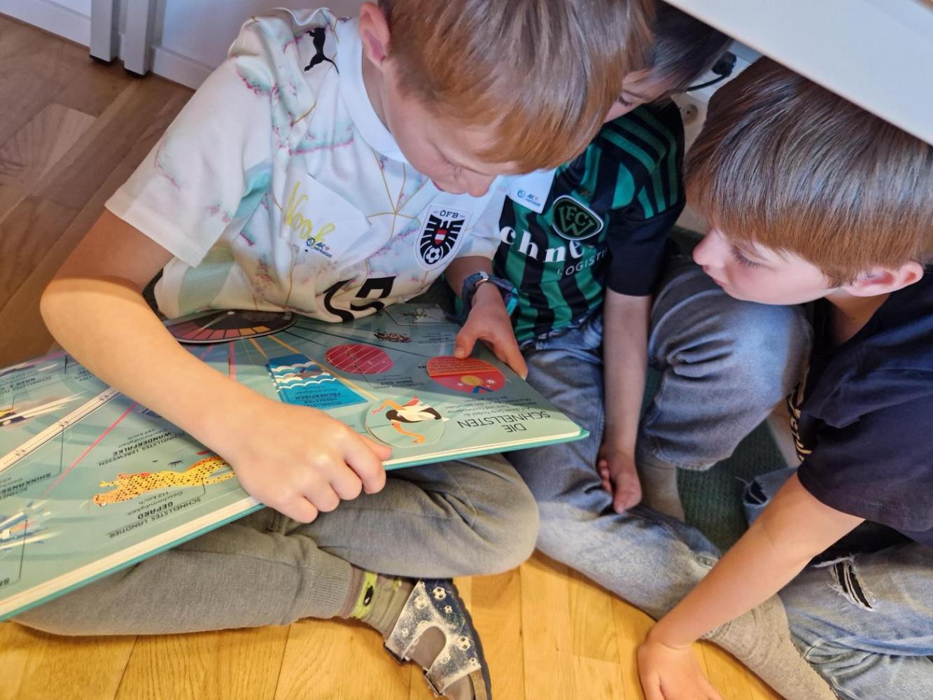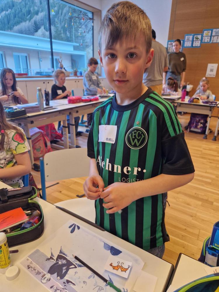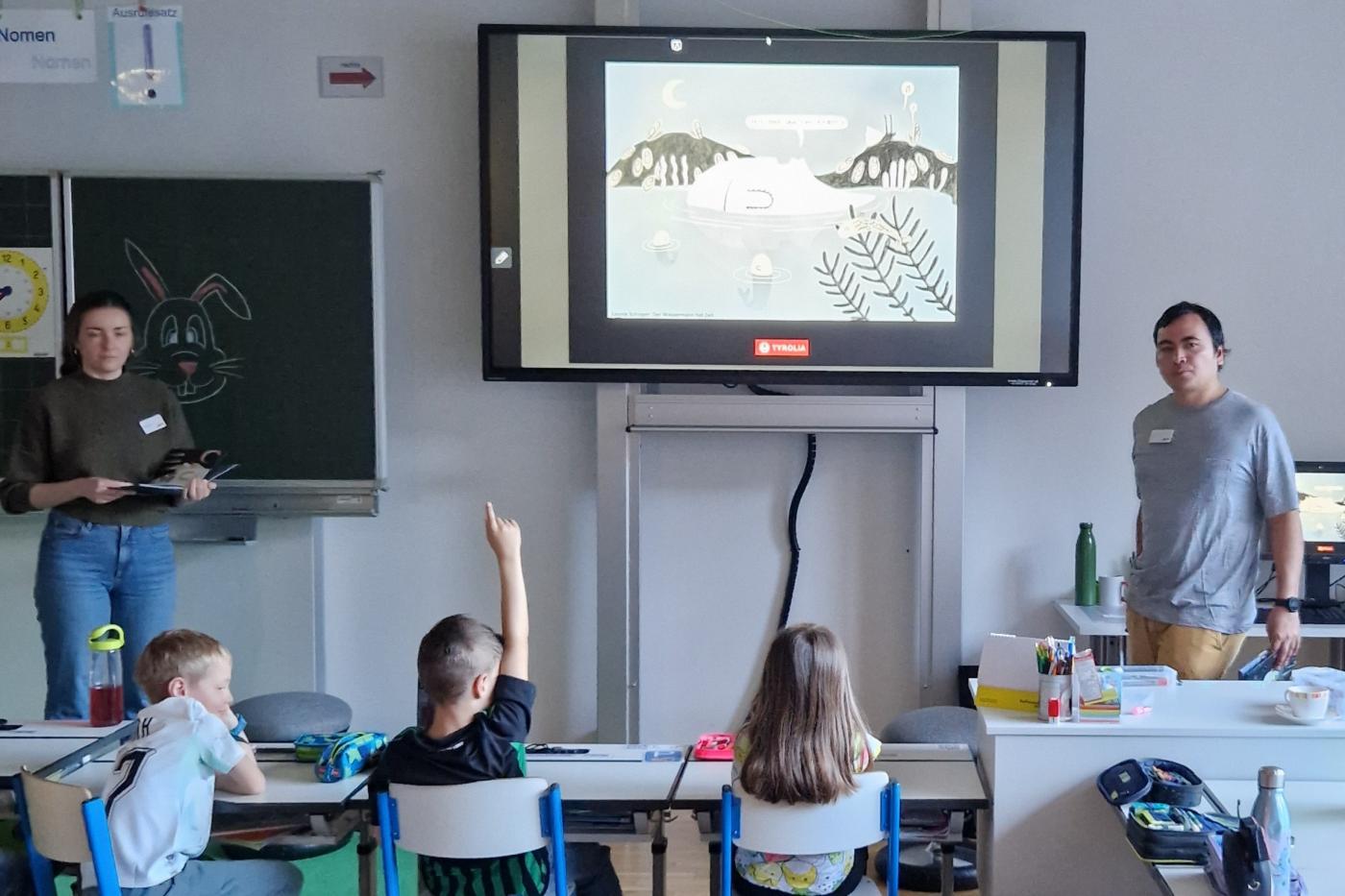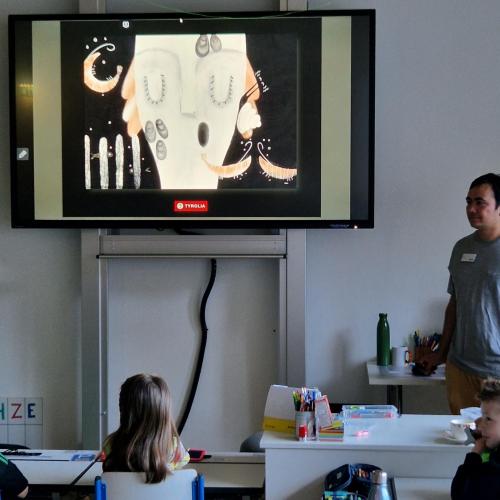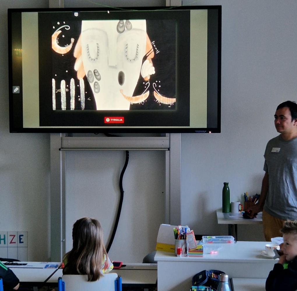 Gleich am ersten Tag nach den Osterferien lasen Ivo und Patrizia von der AK Tirol den Kindern der 2. Klasse das Bilderbuch „Der Wassermann hat Zeit“ vor: