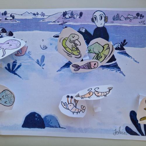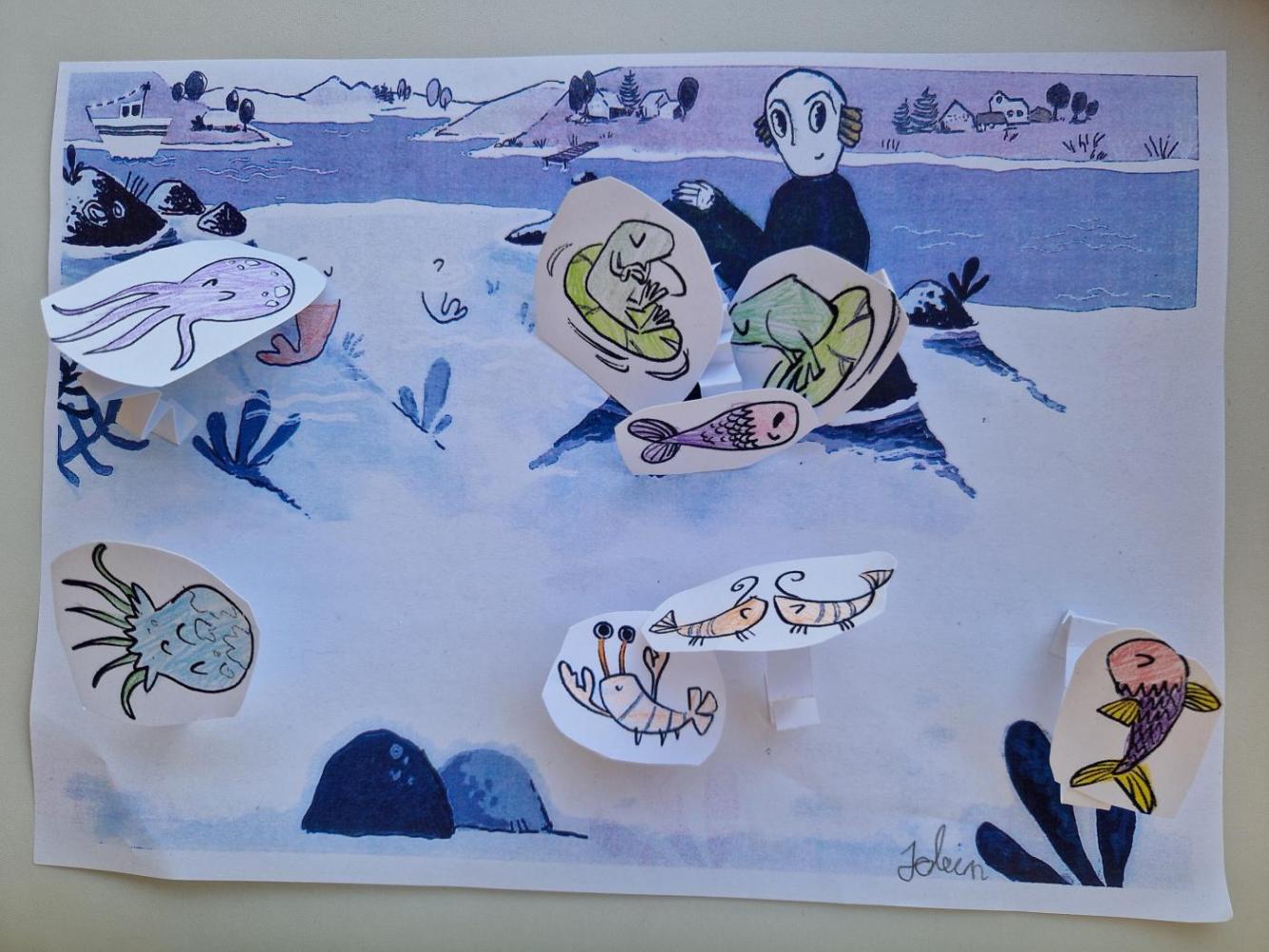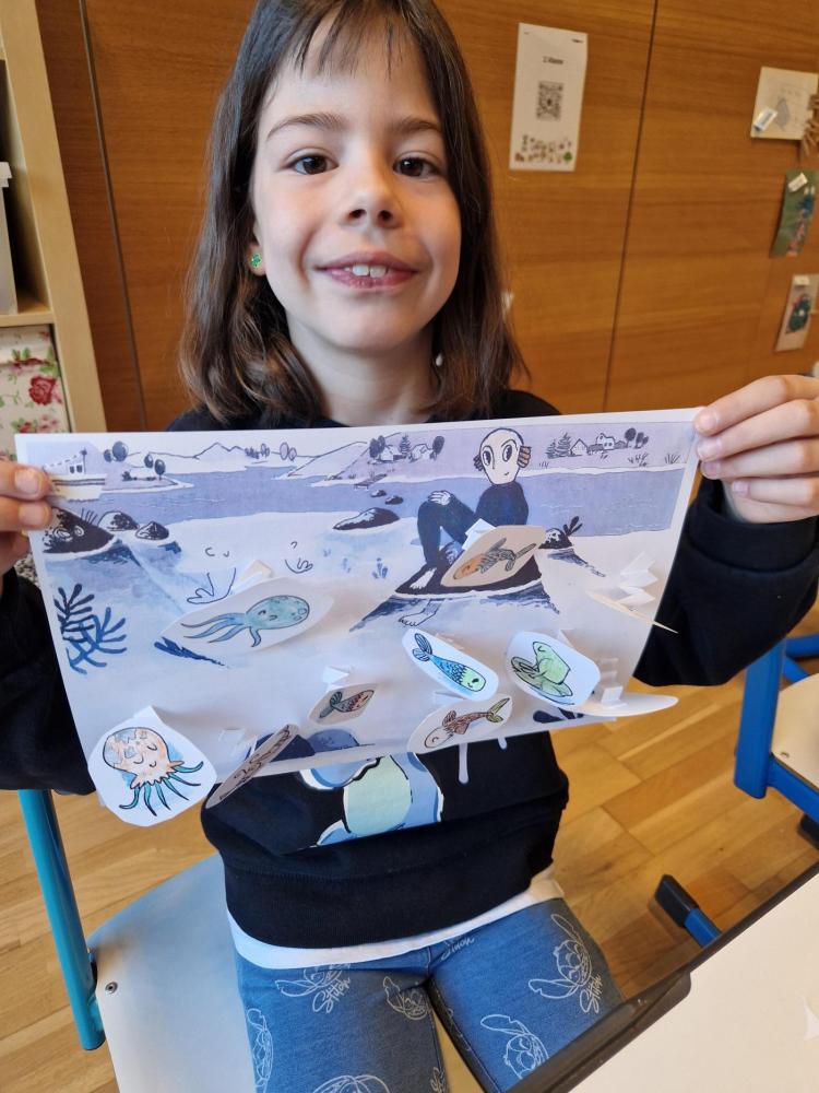 Im Anschluss an das Bilderbuchkino gestalteten alle mit Feuereifer ein „Unterwasser-3-D-Bild“. Bei den kniffligen Puzzle-Rätseln hatten die Kinder sehr viel Spaß, denn jeder wollte der Schnellste sein!