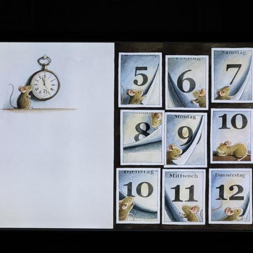 In einem stimmungsvollen Bilderbuchkino lernten die Kinder die kleine Maus von Torben Kuhlmann kennen. Die Kinder waren sichtlich gefesselt von den detailreichen Illustrationen, die auf der großen Leinwand eine ganz besondere Magie entfalteten. Gemeinsam begleiteten sie die mutige Maus auf ihrer abenteuerlichen Suche nach einer Möglichkeit, die Zeit zurückzudrehen.