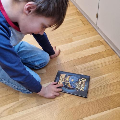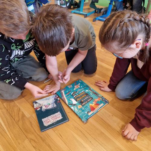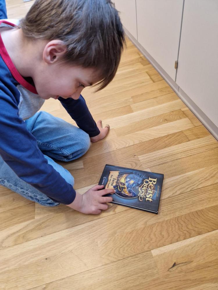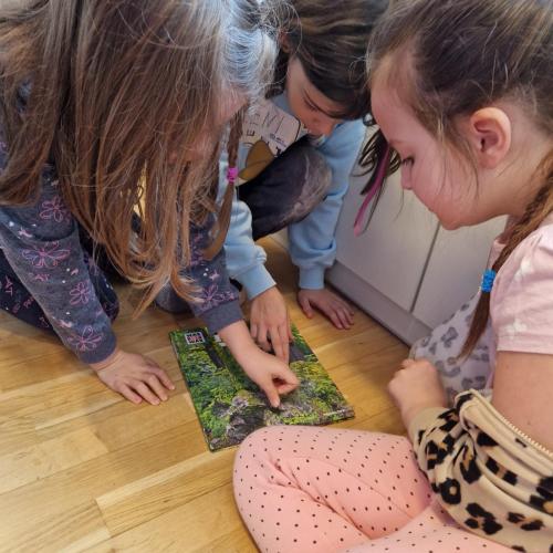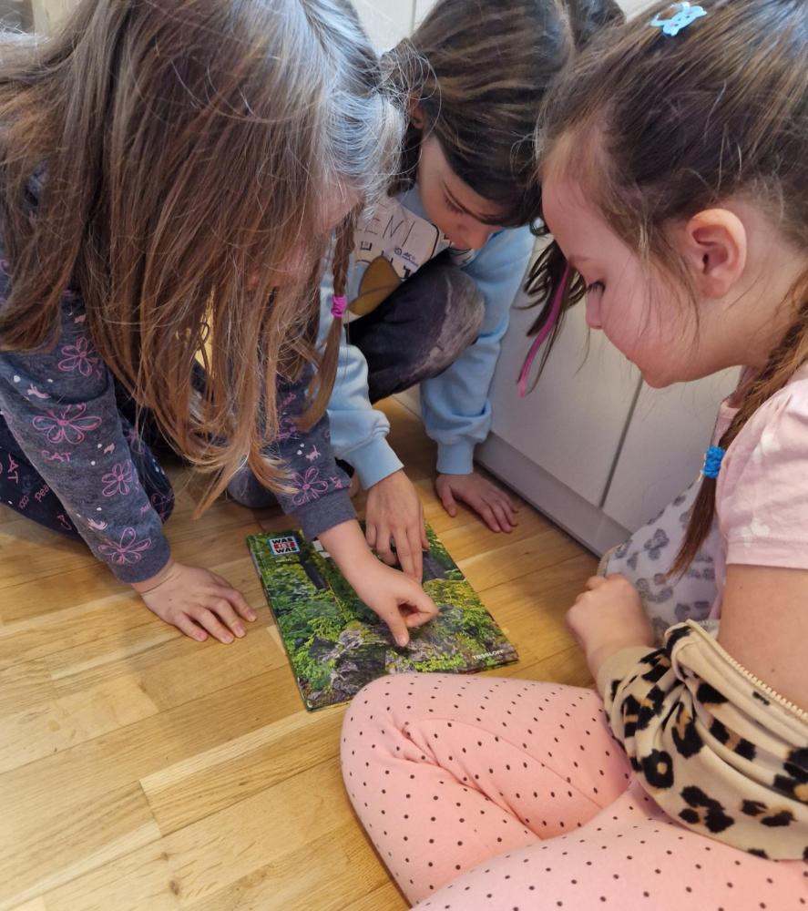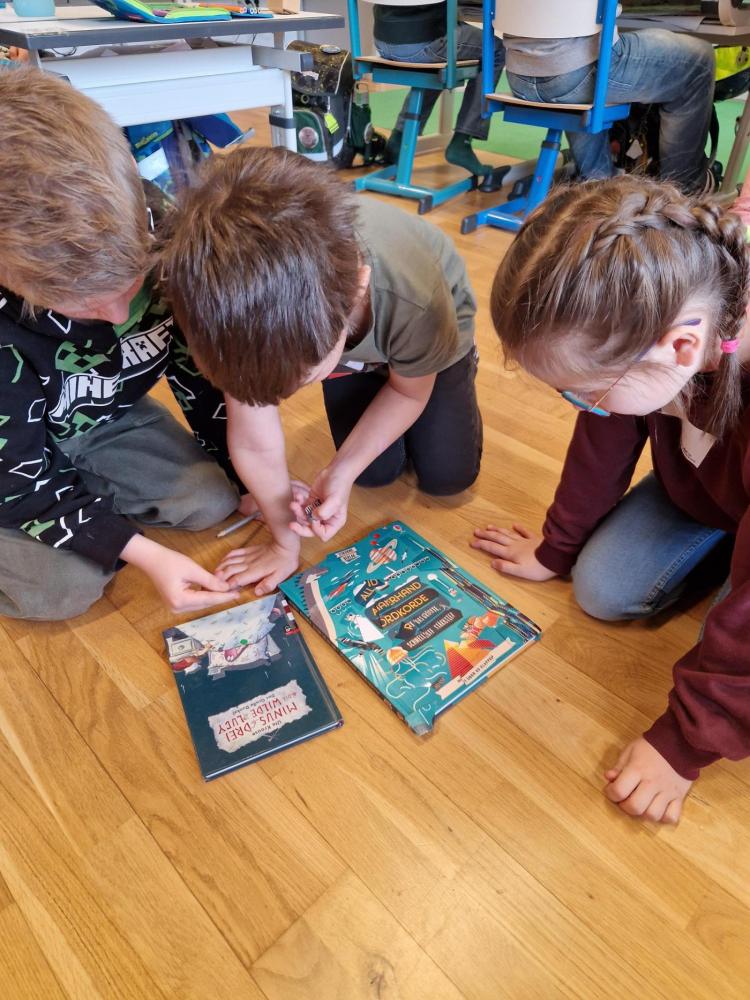 Zum Schluss galt es noch ein Bücher-Puzzle zu lösen. Mit Freude flitzten die Kinder zwischen den aufgelegten Büchern hin und her und hatten die Aufgabe im Nu gelöst.