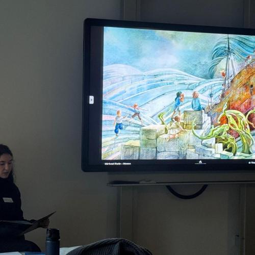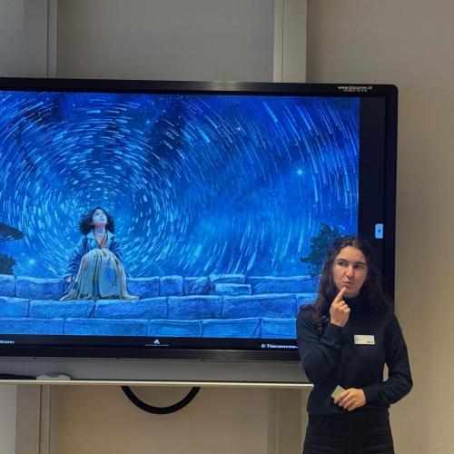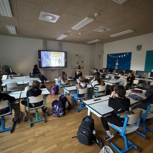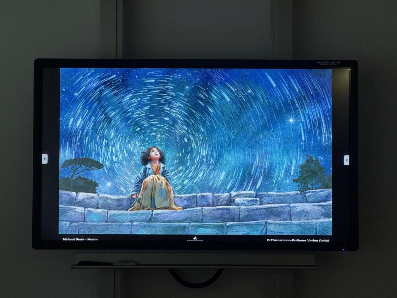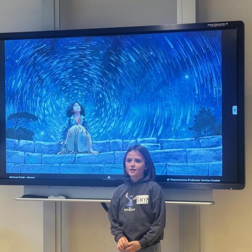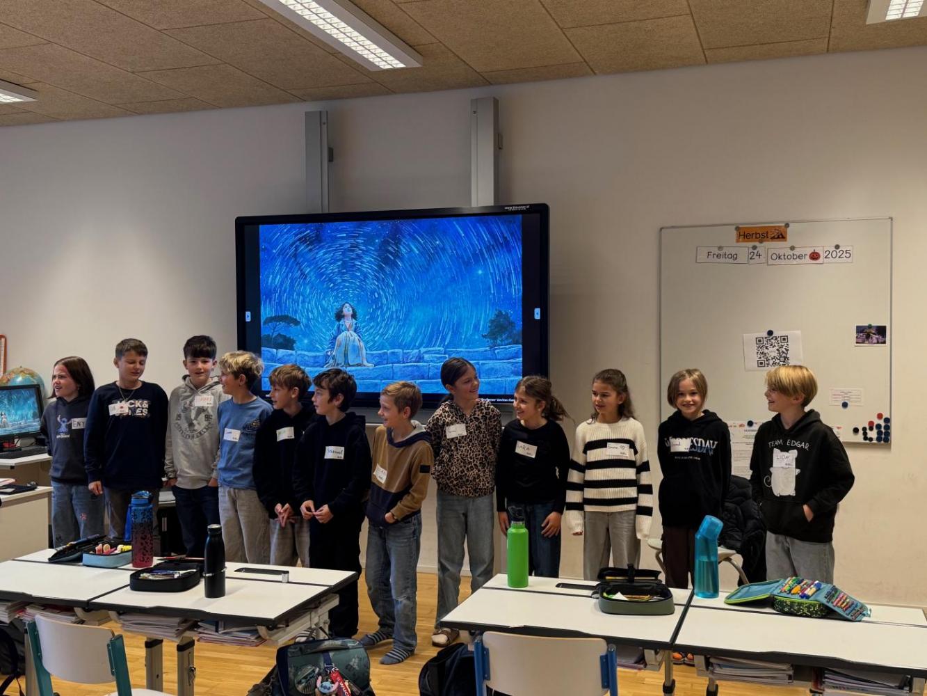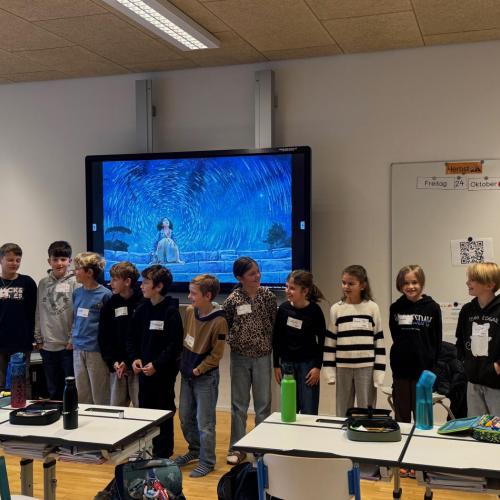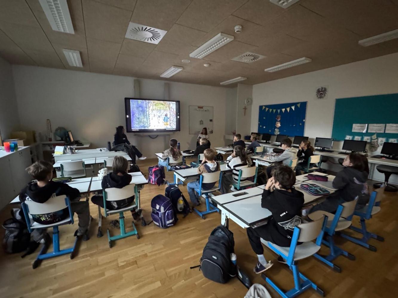 Das Klassenzimmer verwandelte sich für diesen Vormittag in einen kleinen Kinosaal, in dem die Schülerinnen und Schüler die Geschichte „Momo“ kennenlernen durften.