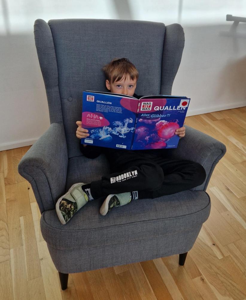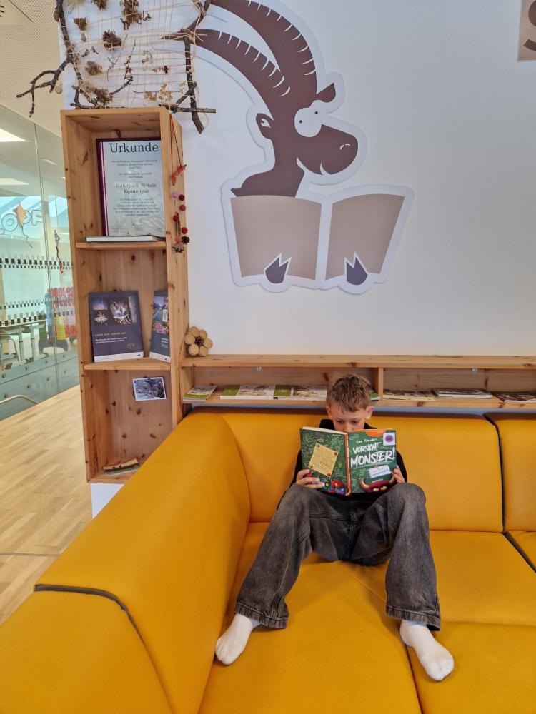 Unsere jungen Leserinnen und Leser konnten die schöne Auswahl an Kinderbüchern ganz gemütlich durchstöbern. Ein neuer gesponserter Lesestuhl lud dabei zum Schmökern ein!