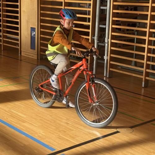 Am 13. November 2025 fand im Turnsaal der Mittelschule Pitztal in Wenns die erste Radfahrübung für die Kinder der 4. Klasse statt.