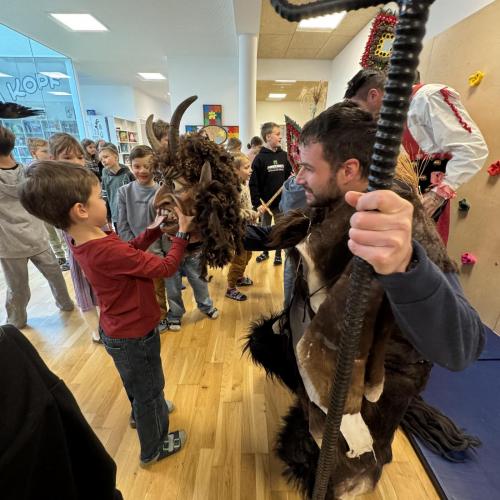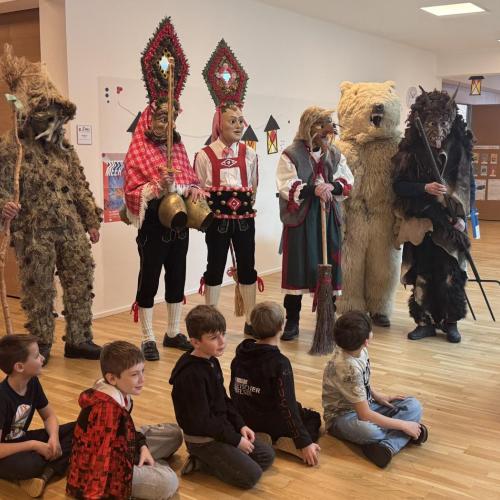 Die Schülerinnen und Schüler erhielten spannende Einblicke in die vielfältigen Figuren des Blochziachns, darunter Roller, Scheller, Schwoaftuifel, Bär, Giggeler, Hexenmuater, Tatschamandla und viele mehr.