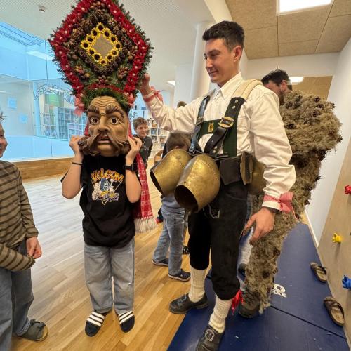 Am Erhardstag, dem 08. Jänner 2026, besuchte eine Abordnung der St. Leonharder Fasnachtler unsere Schule und brachte den Kindern echtes Fasnachtsbrauchtum aus unserer Gemeinde näher. Gleichzeitig luden sie herzlich zum Fasnachtsumzug für Kinder am 07. Februar 2026 ein.